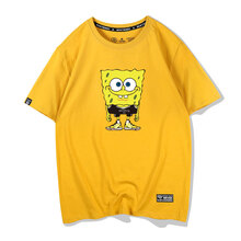 动漫卡通海绵宝宝T恤男派大星联名短袖女宽松慵懒风情侣百搭上衣 W-黄短袖T恤 海绵宝宝球衣 XXL