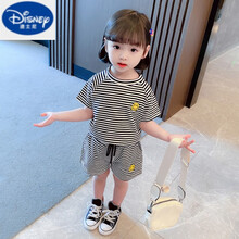 ℂ℘Disney/迪士尼品牌童装女童短袖条纹套装夏装薄款两件套儿童洋气