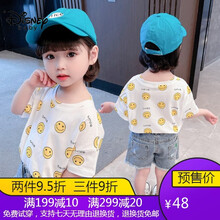 童半袖笑脸上衣小童纯棉洋气夏装1-7岁女宝宝