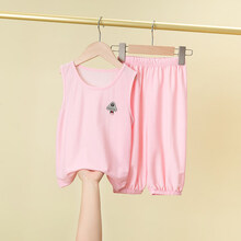 高端轻奢儿童棉麻夏薄款背心套装冰丝棉绸两件套男女童宝宝睡衣无袖T恤 粉色 100cm(100码【身高90CM】)
