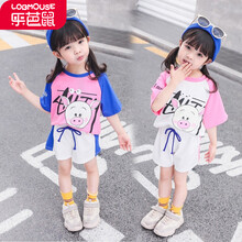 短裤两件套1-6岁运动宽松小女孩两件套 蓝色(小猪款) 100码建议2-3岁 (身高90-100cm)