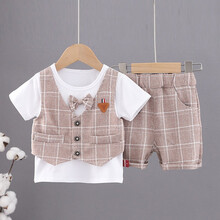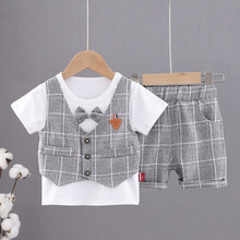 GZ.MINI童装男童套装2021夏季新款韩版儿童帅气条纹假两件马甲