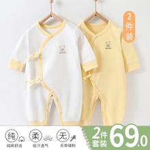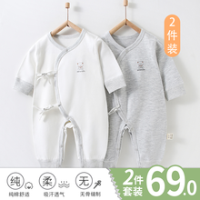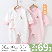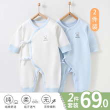 系带夏款哈衣四季纯棉爬爬服 偏襟卡通浅蓝2件装 59码(建议1-3个月8-12斤)