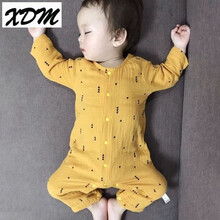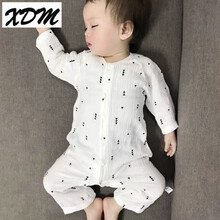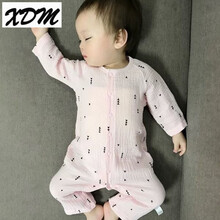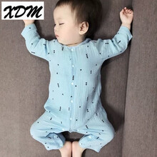 夏0薄款长袖3纱布韩版爬爬服6纯棉新生儿睡衣宝宝