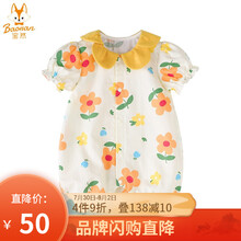 宝然婴儿连体衣夏季薄款公主哈衣爬爬服外出抱衣女宝宝夏装6147 浅杏色大花朵 90cm