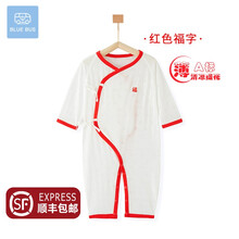 新生儿提花夏装宝宝幼儿透气系带爬服0-1月-2月3月 红色福字-提花(系带款) 59码(9-12斤/0-3月 )