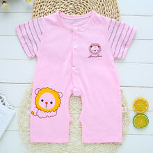 楷泉℘‼️〶【新上市】婴儿连体衣夏天薄款短袖新生儿空调夏装睡衣宝宝哈衣0-12个月爬服 狮子粉 73(建议4-8个月)