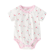 王子丹顿 夏季新款婴儿女宝宝纯棉连体衣三角哈衣短袖薄款包屁衣夏装爬服 粉边小樱桃S735 66码-6M/体重13斤内身高62厘米以下