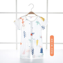 婴儿衣服纯棉宝宝短袖连体衣新生儿哈衣爬服儿童和服连身衣夏季外出服 BE115 (森林小熊-闭裆款)59码