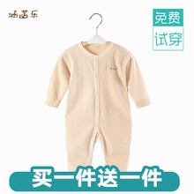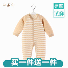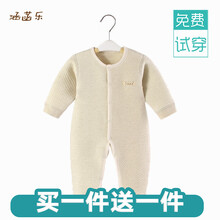 纯棉春秋季保暖男女宝宝爬服保暖闭档款 厚款闭档米色 59码 (适合59CM内身高)