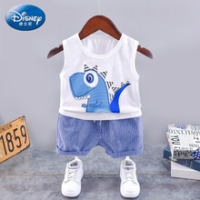 迪士尼童装1-3岁儿童套装夏装男童宝宝纯棉薄款无袖背心条纹