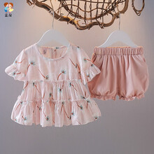 益淘女童夏季短袖T恤套装2021女宝宝休闲两件套洋气