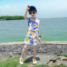 怡淑涵小男孩睡衣夏季薄款运动青少年两件套男童速干背心无袖短裤套装2021夏款宝宝网眼中小童儿童衣