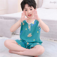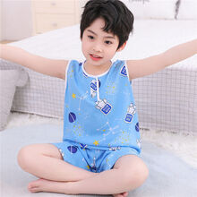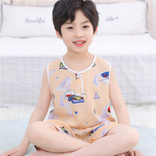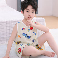 迪士尼(Disney)夏季儿童家居服男童女童薄绵绸背心小孩夏天无袖套装宝宝棉绸睡衣 洋红色 无袖短裤跑车 75号建议穿110cm