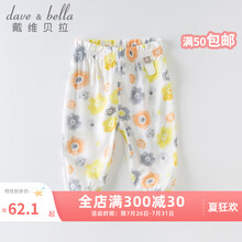 戴维贝拉童装儿童防蚊裤女童裤子男童宝宝夏装灯笼裤长裤davebella夏季薄款婴幼儿童裤 花朵印花DBJ13927 100cm(建议身高90-100cm)