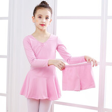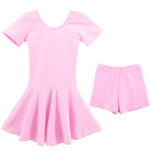女芭蕾舞舞蹈裙分体莱卡棉长袖练功服套装幼儿形体裤裙 粉色短袖套装 4XL(建议身高140cm体重45斤内)