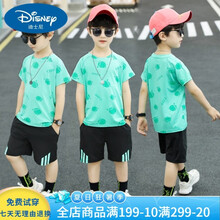 迪士尼男童夏款速干衣套装儿童短袖短裤两件套2021夏季新款中大童宽松运动篮球