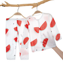 喜萌鸭婴儿衣服新生儿和尚服分体夏季薄款长袖纯棉睡衣男女宝宝幼儿哈衣满月百天爬服空调服3-6-12个月 西瓜 73码(建议6-9个月)