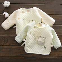 秋冬初生冬季保暖夹棉冬装0-3个月1新生儿纯棉上衣 24123小牛保暖半背彩棉浅咖 52码,5-10斤宝宝 (半背)