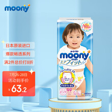 日本进口 尤妮佳(moony) 裤型拉拉裤 加大号尿不湿拉拉裤 XL38片 12-17kg 女宝宝小内裤