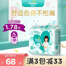一级帮尿布湿透气干爽婴儿尿片轻薄柔软尿不湿男女宝宝通用 大包装 清新帮 加大号 XL-38片(适合12-17kg)
