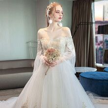 如美如纱 抖音同款新娘2020新款显瘦一字肩长拖尾