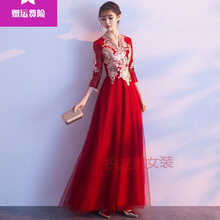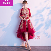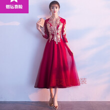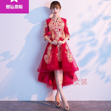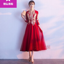 枳之家中式敬酒服新娘2021新款酒红色结婚衣服婚纱订婚礼服女简单大气夏YS 长款-酒红色 XS