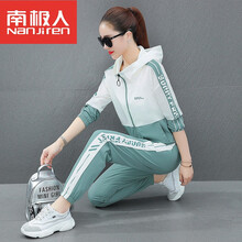 南极人轻奢高档女装 品牌休闲运动服套装女春季2021年新款时尚洋气跑步卫衣两件套春秋 豆绿/6660开衫款 2XL(适合120斤-130斤 肤面料,品质保证)