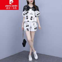 皮尔卡丹轻奢品牌女装 大码女装运动休闲短裤套装胖妹妹夏装薄款显瘦遮肉减龄时髦卫衣两件套时尚女装 白色套装 XL【建议110-120斤】