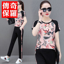 传奇保罗运动服套装女士2021夏季新款休闲韩版宽松时尚花色洋气欧货两件套 305虾粉色 M 80-100体重