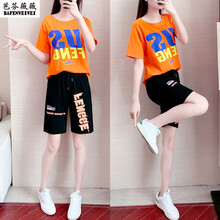 2021夏季新款时尚减龄短袖短裤两件套潮 上橙下黑两件套 XXL