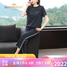 丹帝狮敦品牌轻奢运动套装女夏季时尚减龄妈妈冰丝气质宽松短袖两件套2021夏天新款洋气显瘦休闲运动女装 黑色 XL