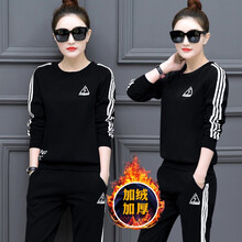 采梵 运动套装女春秋新款韩版时尚圆领时髦大码卫衣休闲服装两件套 602黑色【加绒加厚】 XXXL【建议135-145斤】