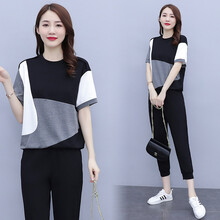 婳玮 休闲套装女2021夏季新款韩范宽松卫裤炸街减龄时尚运动套装 黑色 L