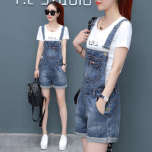 小个子显高1883 背带裤+白色短袖(