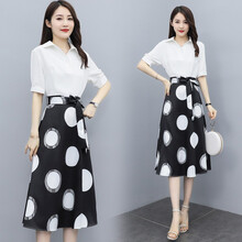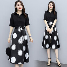 忆思恒时尚波点连衣裙女2021年夏季新款气质职业装大码女装洋气减龄时髦休闲宽松显瘦雪纺裙子女 图片色 L