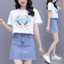 珠珊连衣裙夏2021女装夏装新款女神范洋气时尚套装女网红俏皮法国小众 蓝色套装 L(建议105-115斤左右)