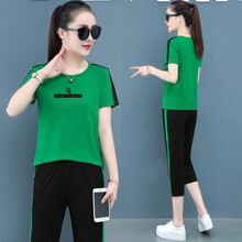 商茵 纯棉运动服套装女休闲裤女2021年新款妈妈洋气减龄夏装宽松时尚显瘦休闲时尚套装潮 7716绿色七分裤套装 3XL(推荐140-155斤)