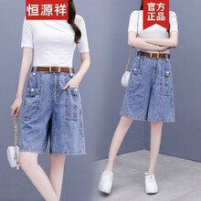 恒源祥自l营旗舰官方店休闲裤女夏季新款常规气质休闲套装女韩版时尚减龄五分裤套装女牛仔阔腿裤两件装套装 白+牛仔裤 M