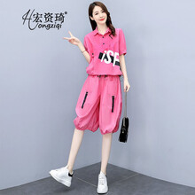 柏潮 炸街套装女夏2021年新款时尚休闲网红五分阔腿灯笼裤两件装宽松潮缇忆遥朵矣女装微裳服饰 粉色 M【100-112斤穿】