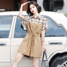 宽松连体裤垂感工装宽松阔腿裤小个子短裤裙裤 图片色 L