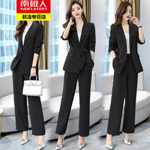 南极人高档品牌女装 网红炸街套装女2021新款春秋时尚气质女神范洋气西装阔腿裤两件套套装气质显瘦 黑色 XL