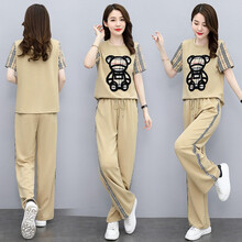 迈绮俪MAIQILI女装透气舒适阔腿裤休闲职业冰丝套装女两夏款夏天2021年新款时尚洋气 卡其布色 L