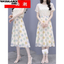 雪纺连衣裙女2021夏装新款女装时尚显瘦套装裙女韩版气质职业装中长款洋气减龄波点裙子柒月雅 图片色套装 L