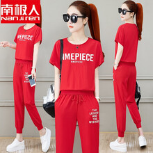 夏季2021新款短袖减龄运动卫衣裤小个子显瘦两件套 红色