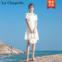 拉夏贝尔连衣裙2021夏季新款女装气质修身显瘦复古少女小清新娃娃领白色连衣裙潮时尚女装 白色 XS