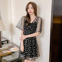 碎花网纱连衣裙+吊带裙减龄两 经典黑 S