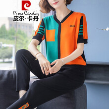 ℘皮尔卡丹品牌女装ℑ轻奢品质卫衣女大码减龄冰丝运动服休闲套装薄款胖mm夏季时尚V领时尚女装 橘色 L