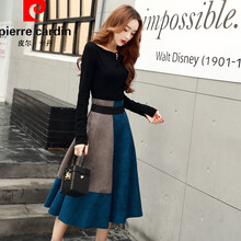 皮尔卡丹轻奢品牌 秋装2021年新款秋季女装早秋款时尚气质套装裙连衣裙子两件装套装女初秋针织 蓝+灰 上衣+裙子 S