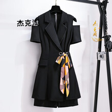 胖妹妹显瘦遮肚子连衣裙收腰两 黑色【西装裙